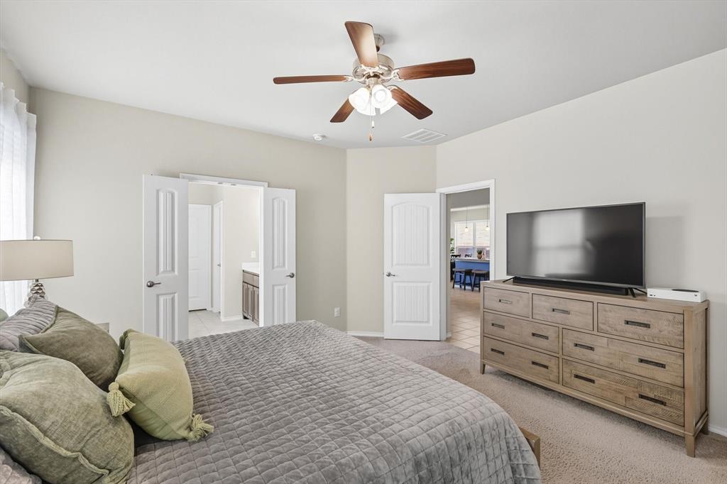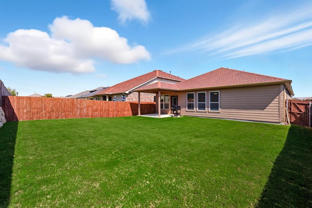 Welcome home! This light and bright 3 bedroom, 2 bath home is filled with floor-to-ceiling windows that make the whole space feel cheerful and open. The living area flows easily into the kitchen and dining, perfect for hanging out, entertaining, or just being part of the action while cooking dinner. Designer-inspired selections give the home a clean and fresh touch, while the split bedroom layout keeps things comfortable and private. The primary suite is oversized, complete with an ensuite bath and a huge walk-in closet. Out back, you’ll find a large yard and a covered porch that’s just waiting for summer BBQs or lazy Sunday afternoons. Plus, this fun community has its own pool and playground, so there’s always something to do close to home. With carpet only in the bedrooms and a 2-car garage with extra storage, this home balances easy living with a little everyday luxury.