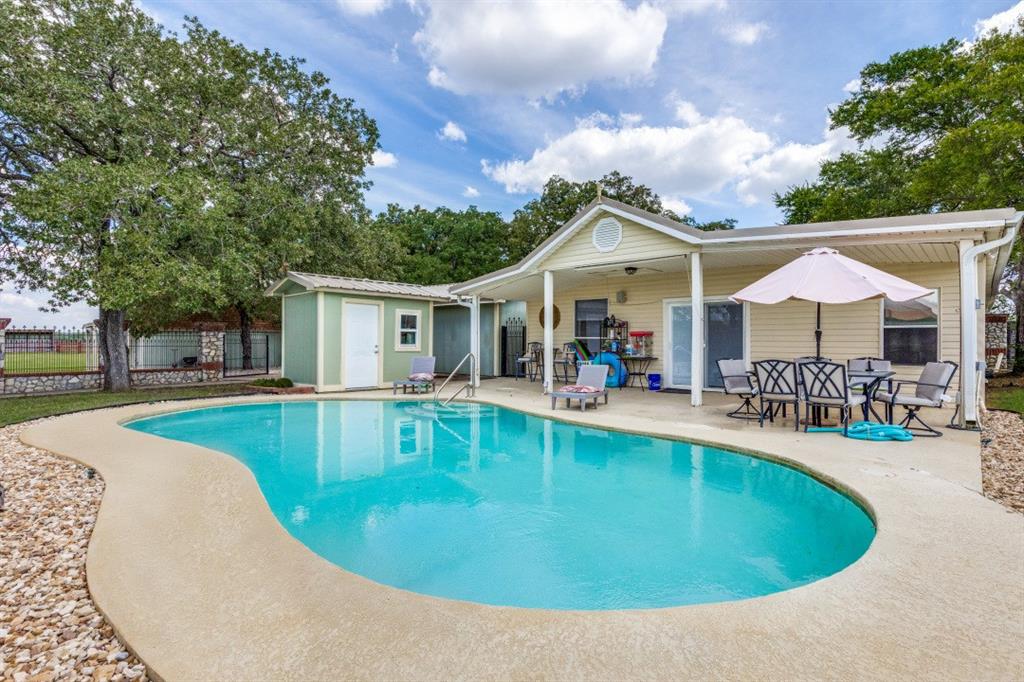 You will look forward to arriving home every day to this beautiful property with over 20 acres of stunning landscape! The main house is a two-bedroom 2 bath floorplan, the sitting area can be easily converted back to a third bedroom. The back covered patio overlooks over 20 acres of rolling pasture. Between the homes you will find a generous portion of shade for outdoor entertaining. This homestead offers everything, country charm, beautiful views, painted sunsets, wildlife, green pastures, wrap around porch, inground pool and much more. Metal roof, radiant barrier, 20 seer heat pump-AC, reverse osmosis water filter, RV hookup w extra septic. Dual pane windows, cedar accents, wood floors, 2 ac & heated dog runs. The separate 50' x 15' guest quarters includes a large bedroom, kitchenette, and living area with just under 700sf of living space. Bring your horses, cattle, goats and chickens to their new home. There is a recently added 40'x50' shop for all of your toys and hobbies. Easy access to HWY 287N, conveniently located near Decatur, Bowie, and less than an hour from Fort Worth. This one is a must see!